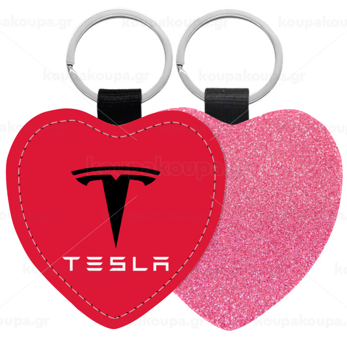 Tesla motors, Μπρελόκ PU δερμάτινο glitter καρδιά ΡΟΖ