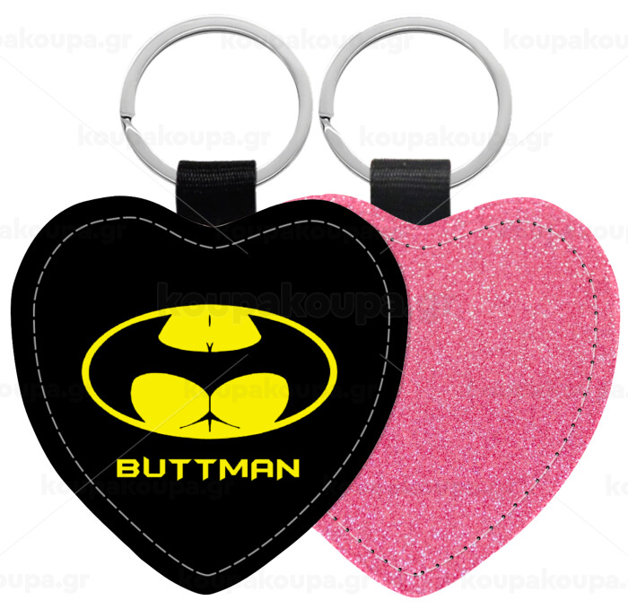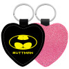 Buttman, Μπρελόκ PU δερμάτινο glitter καρδιά ΡΟΖ