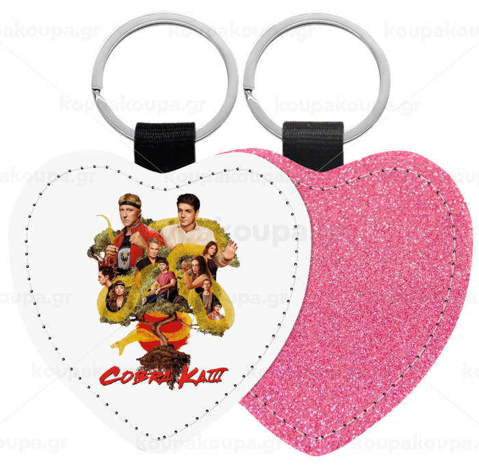 Cobra Kai tree, Μπρελόκ PU δερμάτινο glitter καρδιά ΡΟΖ