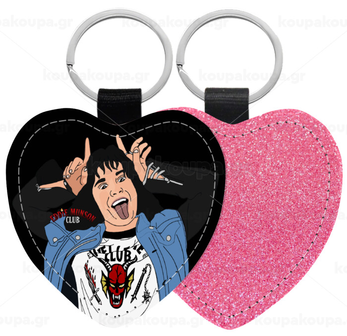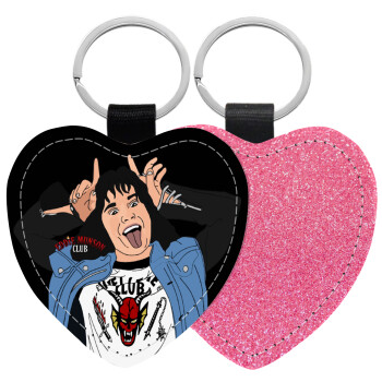 Eddie Munson, Μπρελόκ PU δερμάτινο glitter καρδιά ΡΟΖ