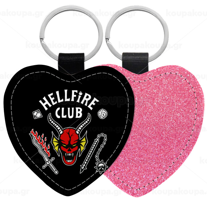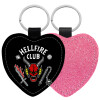 Hellfire CLub, Stranger Things, Μπρελόκ PU δερμάτινο glitter καρδιά ΡΟΖ