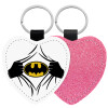 Hero batman, Μπρελόκ PU δερμάτινο glitter καρδιά ΡΟΖ
