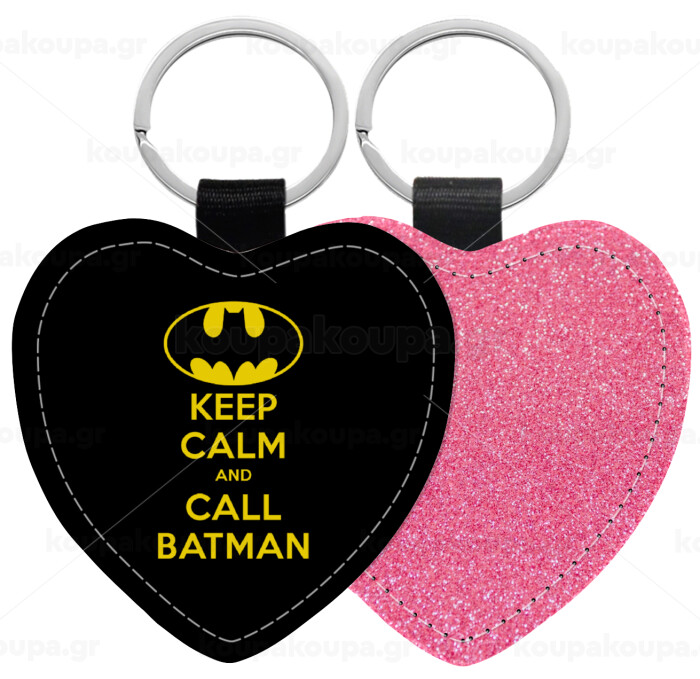 KEEP CALM & Call BATMAN, Μπρελόκ PU δερμάτινο glitter καρδιά ΡΟΖ