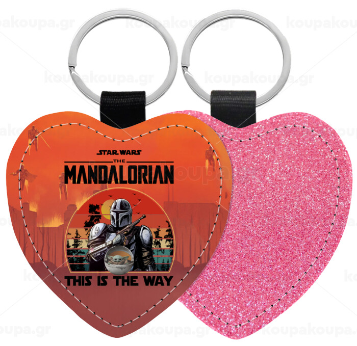 Mandalorian, Μπρελόκ PU δερμάτινο glitter καρδιά ΡΟΖ