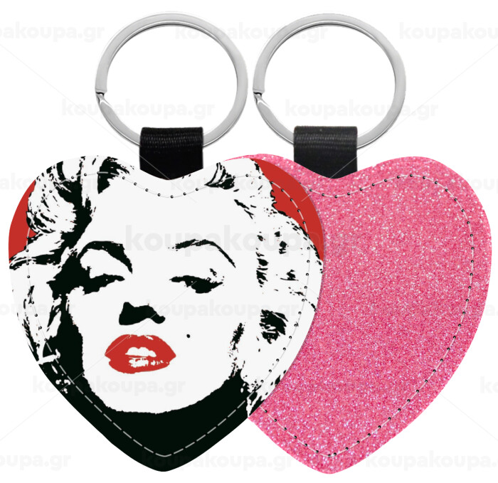 Merilin, Μπρελόκ PU δερμάτινο glitter καρδιά ΡΟΖ