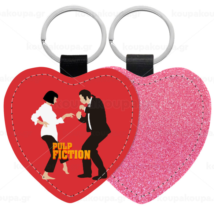 Pulp Fiction dancing, Μπρελόκ PU δερμάτινο glitter καρδιά ΡΟΖ