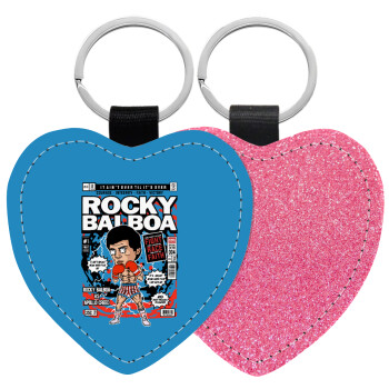 Rocky Balboa, Μπρελόκ PU δερμάτινο glitter καρδιά ΡΟΖ