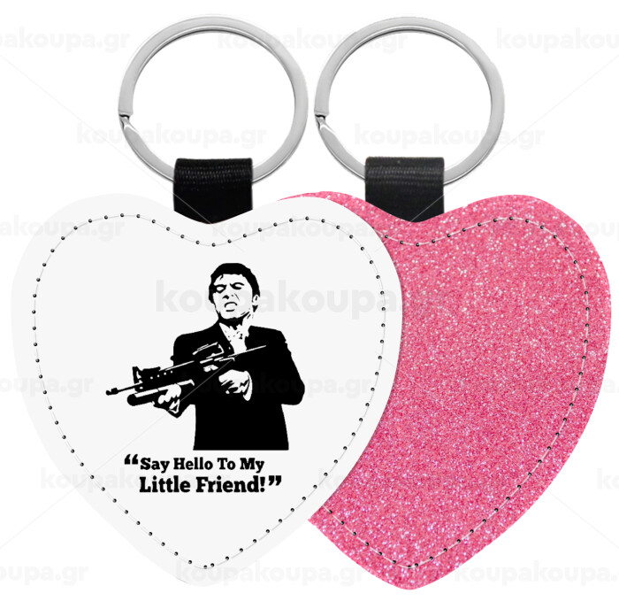 Scarface, Μπρελόκ PU δερμάτινο glitter καρδιά ΡΟΖ