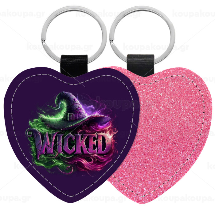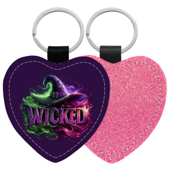 Wicked, Μπρελόκ PU δερμάτινο glitter καρδιά ΡΟΖ