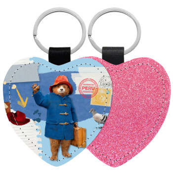 Αρκουδάκι Πάντινγκτον, Μπρελόκ PU δερμάτινο glitter καρδιά ΡΟΖ