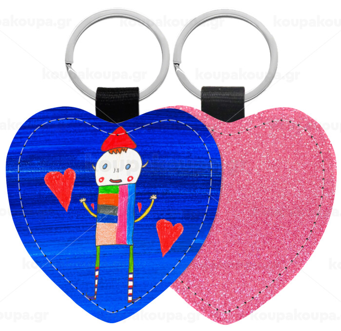 Ο Αλέξανδρος ζωγραφίζει την Αγάπη, Μπρελόκ PU δερμάτινο glitter καρδιά ΡΟΖ