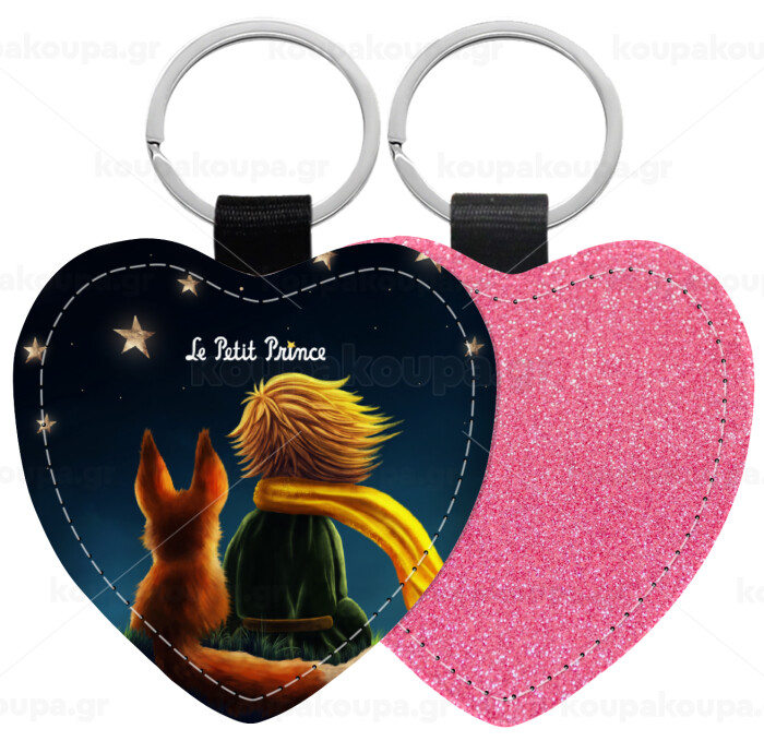 Little prince, Μπρελόκ PU δερμάτινο glitter καρδιά ΡΟΖ