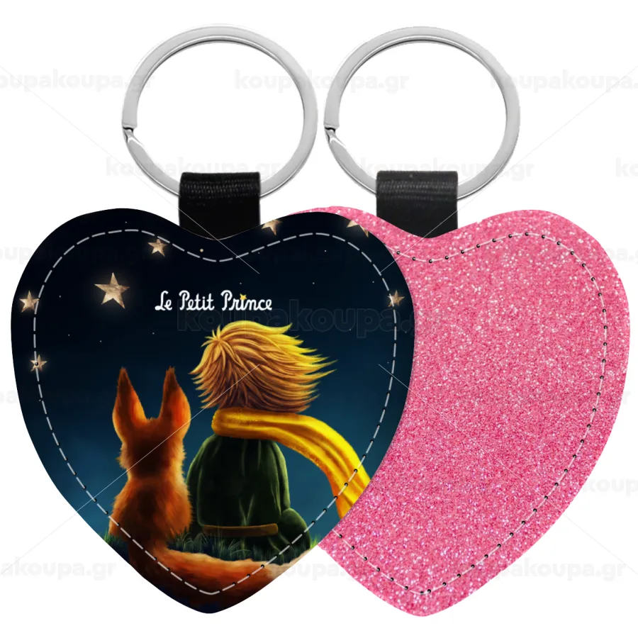 Little prince, Μπρελόκ PU δερμάτινο glitter καρδιά ΡΟΖ