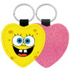 BOB, Μπρελόκ PU δερμάτινο glitter καρδιά ΡΟΖ