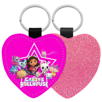 Gabby Dollhouse, Μπρελόκ PU δερμάτινο glitter καρδιά ΡΟΖ