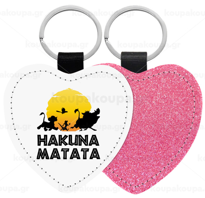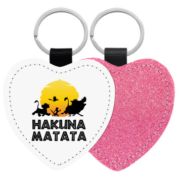 Hakuna Matata, Μπρελόκ PU δερμάτινο glitter καρδιά ΡΟΖ