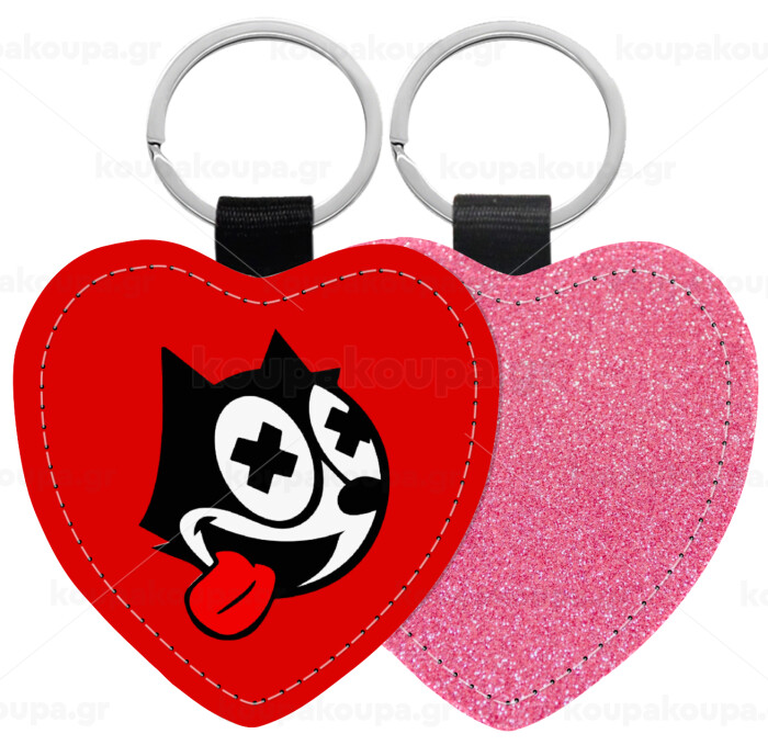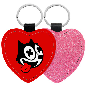 helix the cat, Μπρελόκ PU δερμάτινο glitter καρδιά ΡΟΖ