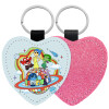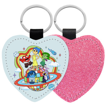 Inside Out, Μπρελόκ PU δερμάτινο glitter καρδιά ΡΟΖ