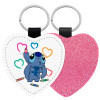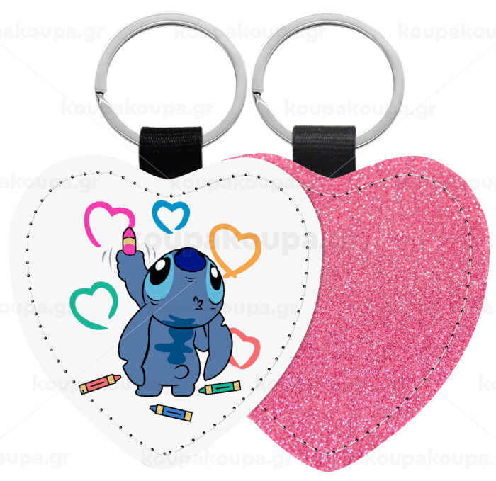 Lilo & Stitch painting, Μπρελόκ PU δερμάτινο glitter καρδιά ΡΟΖ