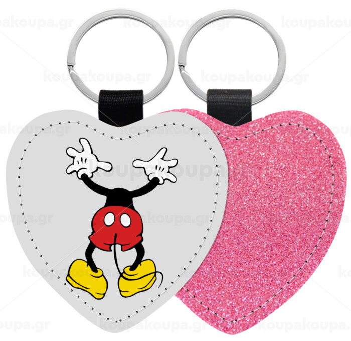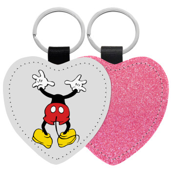 Mickey hide..., Μπρελόκ PU δερμάτινο glitter καρδιά ΡΟΖ