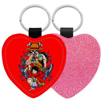 One Piece, Μπρελόκ PU δερμάτινο glitter καρδιά ΡΟΖ