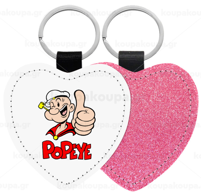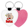 Popeye the sailor man, Μπρελόκ PU δερμάτινο glitter καρδιά ΡΟΖ