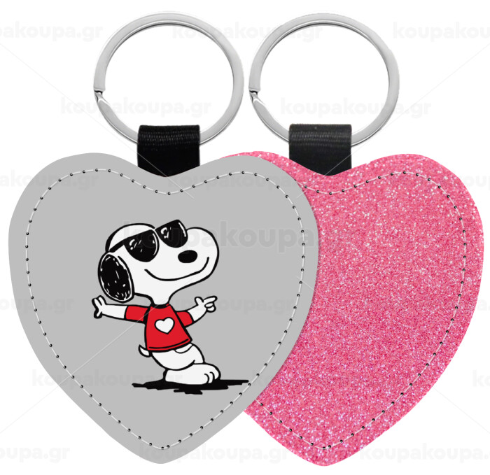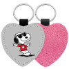 Snoopy καρδούλα, Μπρελόκ PU δερμάτινο glitter καρδιά ΡΟΖ