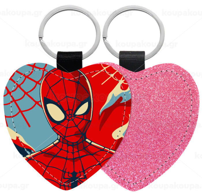 Spiderman kid, Μπρελόκ PU δερμάτινο glitter καρδιά ΡΟΖ