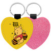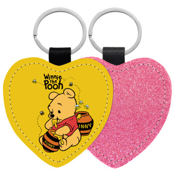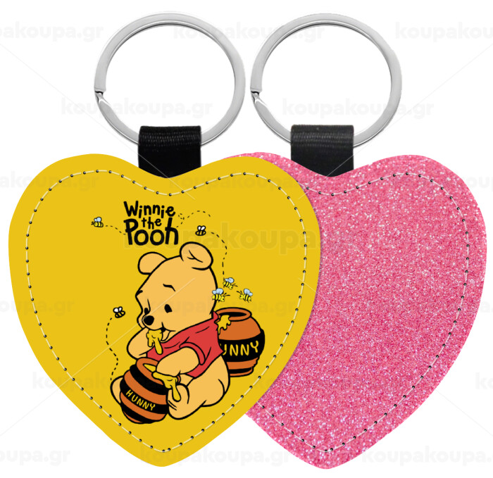 Winnie the Pooh, Μπρελόκ PU δερμάτινο glitter καρδιά ΡΟΖ