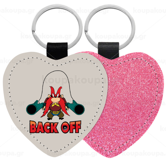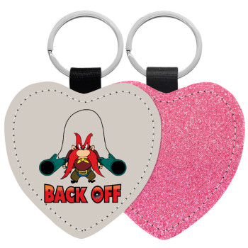 Yosemite Sam Back OFF, Μπρελόκ PU δερμάτινο glitter καρδιά ΡΟΖ