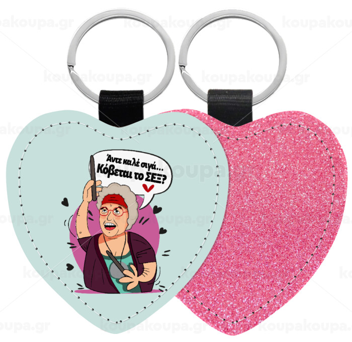 Αντε καλέ, σιγά, κόβεται το σέξ ;, Μπρελόκ PU δερμάτινο glitter καρδιά ΡΟΖ