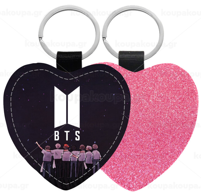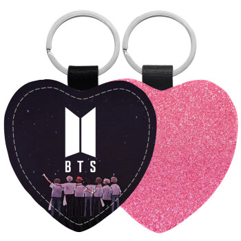 BTS, Μπρελόκ PU δερμάτινο glitter καρδιά ΡΟΖ