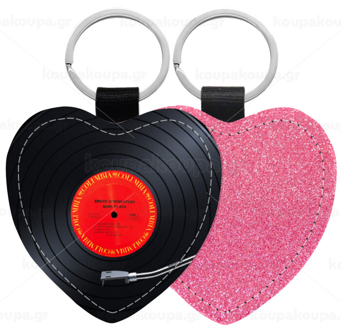 Columbia records bruce springsteen, Μπρελόκ PU δερμάτινο glitter καρδιά ΡΟΖ