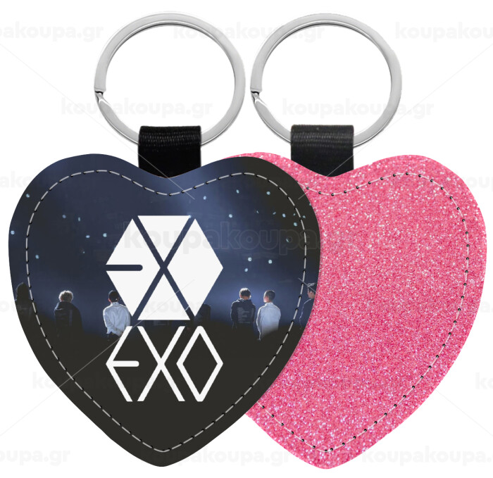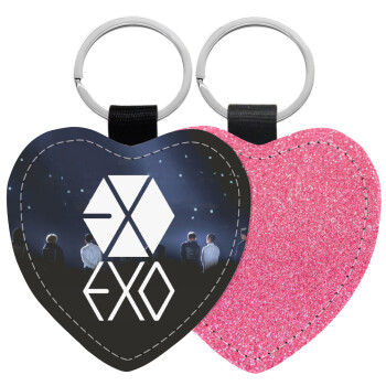 EXO Band korea, Μπρελόκ PU δερμάτινο glitter καρδιά ΡΟΖ