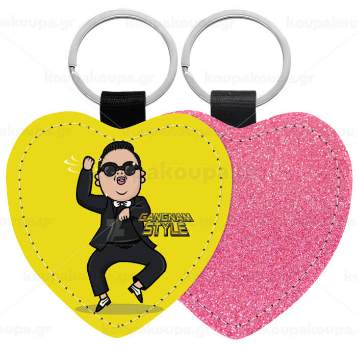 PSY - GANGNAM STYLE, Μπρελόκ PU δερμάτινο glitter καρδιά ΡΟΖ