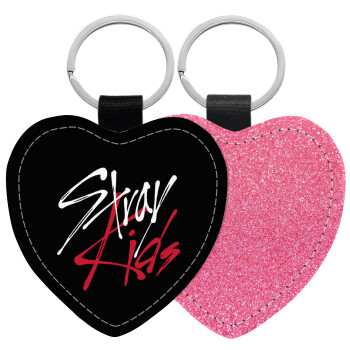 Stray Kids, Μπρελόκ PU δερμάτινο glitter καρδιά ΡΟΖ