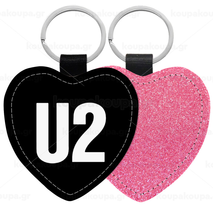 U2 , Μπρελόκ PU δερμάτινο glitter καρδιά ΡΟΖ