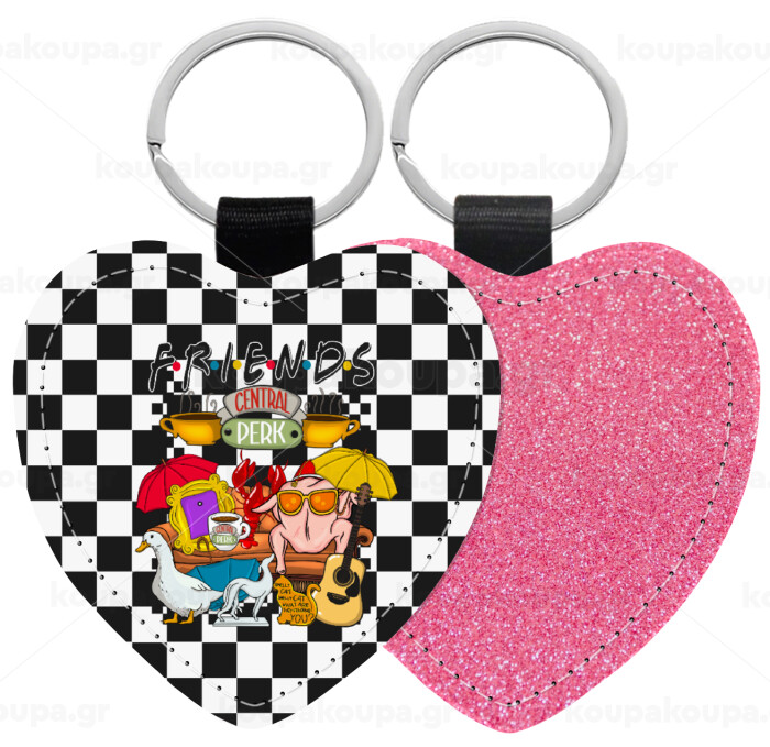 Friends, Μπρελόκ PU δερμάτινο glitter καρδιά ΡΟΖ
