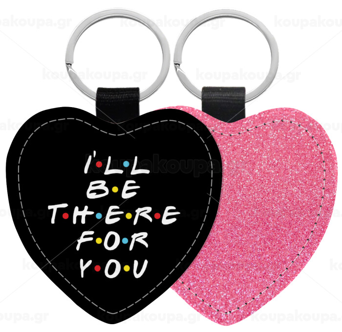 Friends i i'll be there for you, Μπρελόκ PU δερμάτινο glitter καρδιά ΡΟΖ