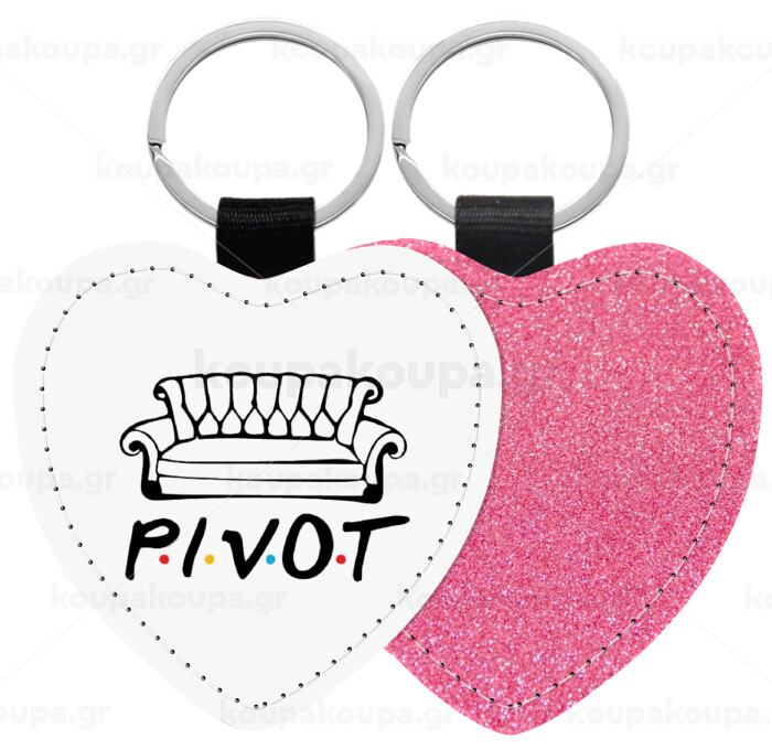 Friends Pivot, Μπρελόκ PU δερμάτινο glitter καρδιά ΡΟΖ