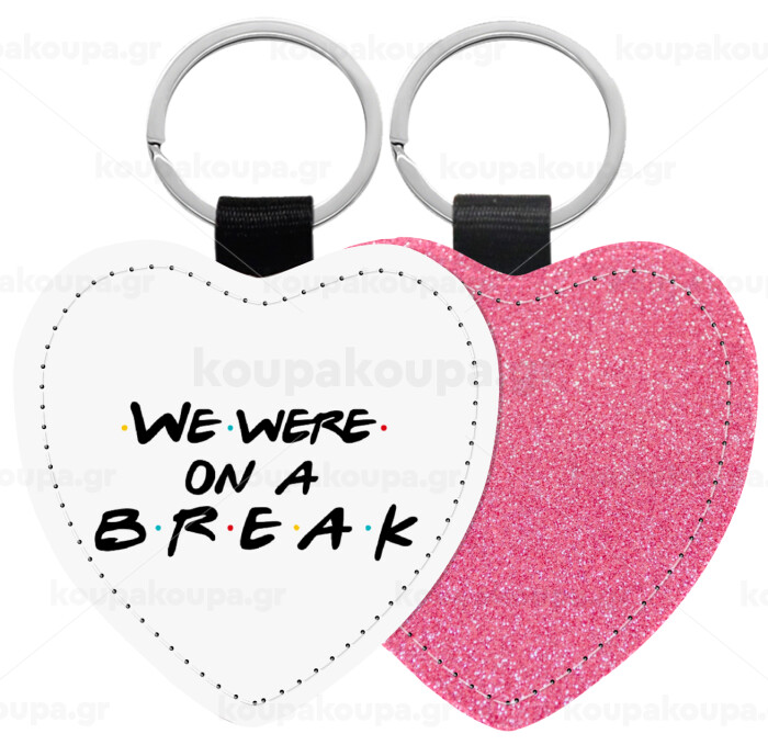 Friends we were on a break, Μπρελόκ PU δερμάτινο glitter καρδιά ΡΟΖ