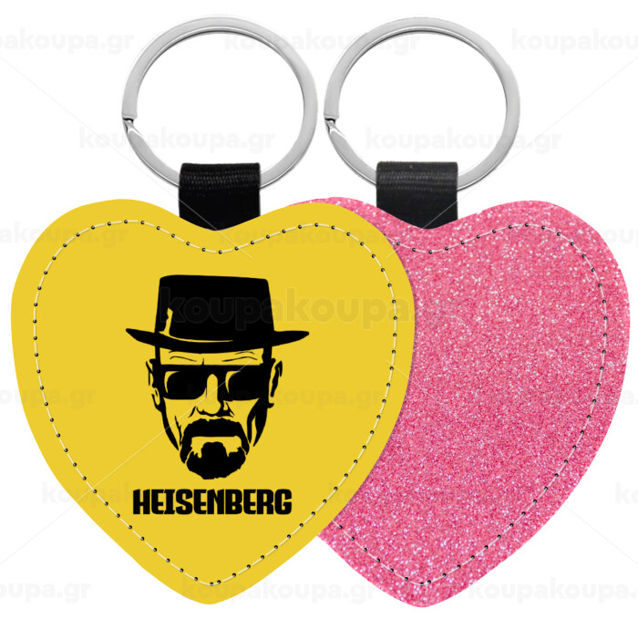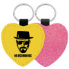 Heisenberg breaking bad, Μπρελόκ PU δερμάτινο glitter καρδιά ΡΟΖ