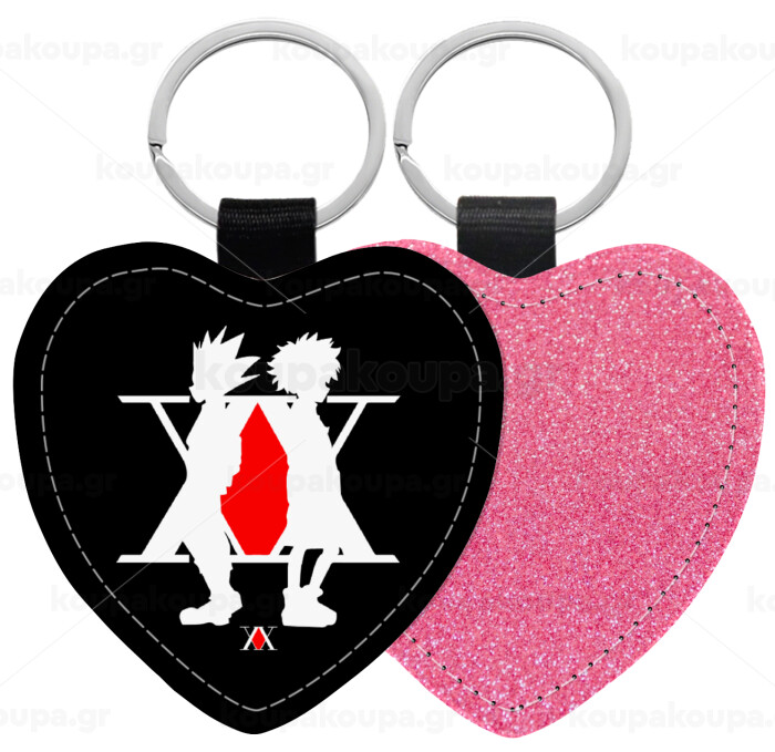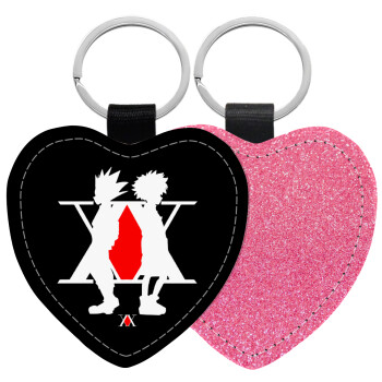 hunter x hunter, Μπρελόκ PU δερμάτινο glitter καρδιά ΡΟΖ