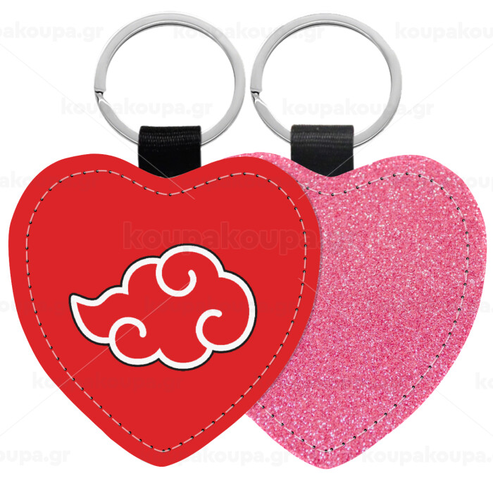 Naruto Akatsuki Cloud, Μπρελόκ PU δερμάτινο glitter καρδιά ΡΟΖ