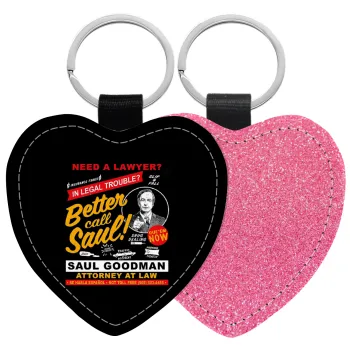 Need A Lawyer Then Call Saul Dks, Μπρελόκ PU δερμάτινο glitter καρδιά ΡΟΖ