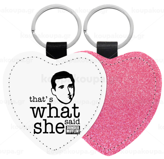 The office Michael That's what she said, Μπρελόκ PU δερμάτινο glitter καρδιά ΡΟΖ