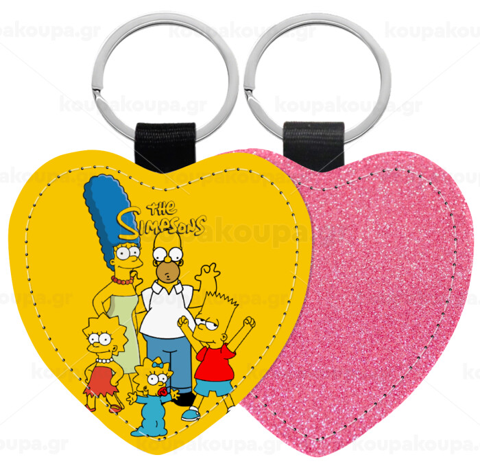 The Simpsons, Μπρελόκ PU δερμάτινο glitter καρδιά ΡΟΖ