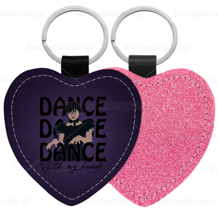 Leatherette keychain with glitter on one side and high resistance leatherette on the other. Safety ring for the keys.