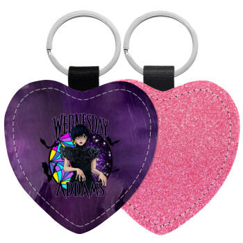 Wednesday Jenna Ortega, Μπρελόκ PU δερμάτινο glitter καρδιά ΡΟΖ
