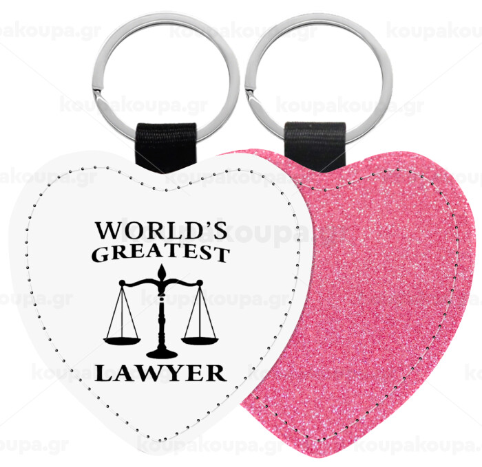 World's greatest Lawyer, Μπρελόκ PU δερμάτινο glitter καρδιά ΡΟΖ